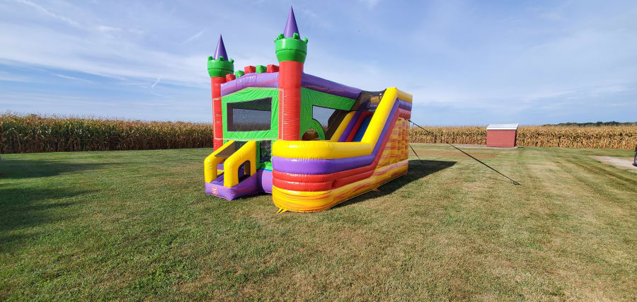 Looking for something a little larger? With an extra 2 feet of jumping space, the Castle Combo XL is a great choice for larger parties. Booking for a summer party? Add on the water feature at check out for an extra splash of fun! Suitable for ages 3 and up.