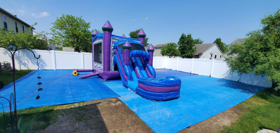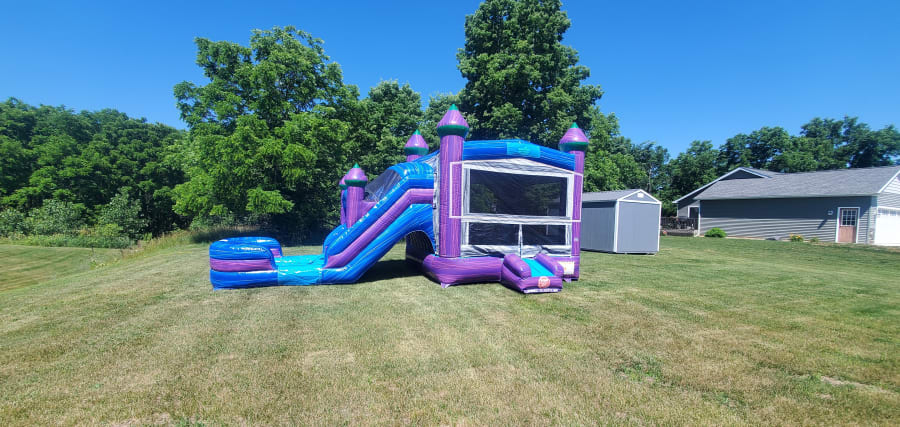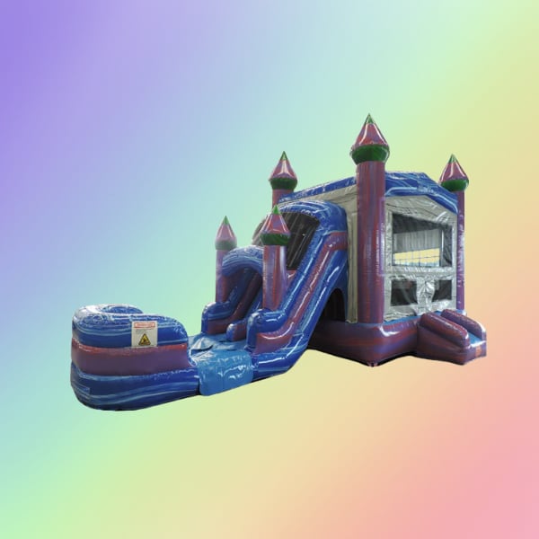 Looking for a little more action? With this Dual Lane Purple combo you can have double the fun. You will be the talk of the party as kids jump, laugh and race side-by-side. Booking for a summer party? Add on the water feature at check out for an extra splash of fun! Suitable for ages 3 and up.