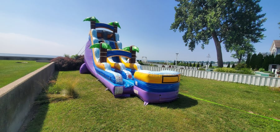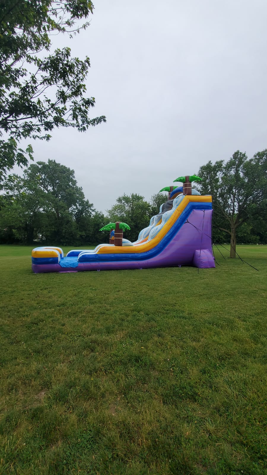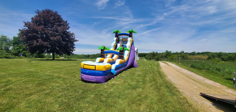 The TropicalWave is a single-lane 19' waterslide and will bring a tropical vibe to any party. Perfect for kids, teens and adults who want to add a splash of excitement to their next event!
